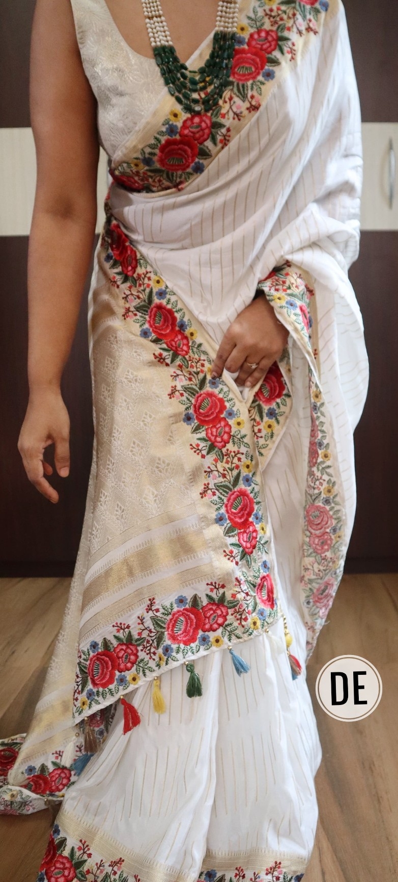 *Pure munga silk saree with floral kashida embroidery in vibrant hues*?? Contrast zari woven blouse piece