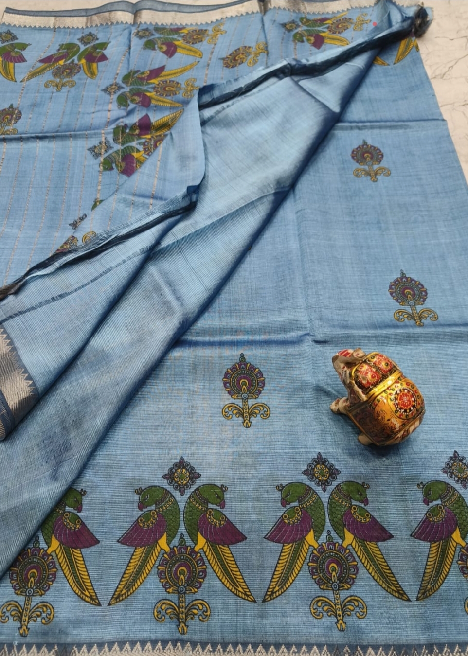 Mangalagiri Pure handloom 50/50 border saree with Allover Tanjore print saree with Blouse